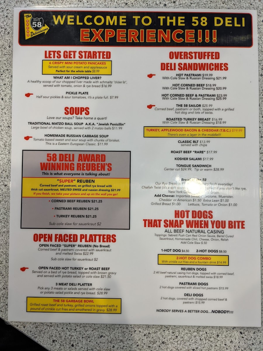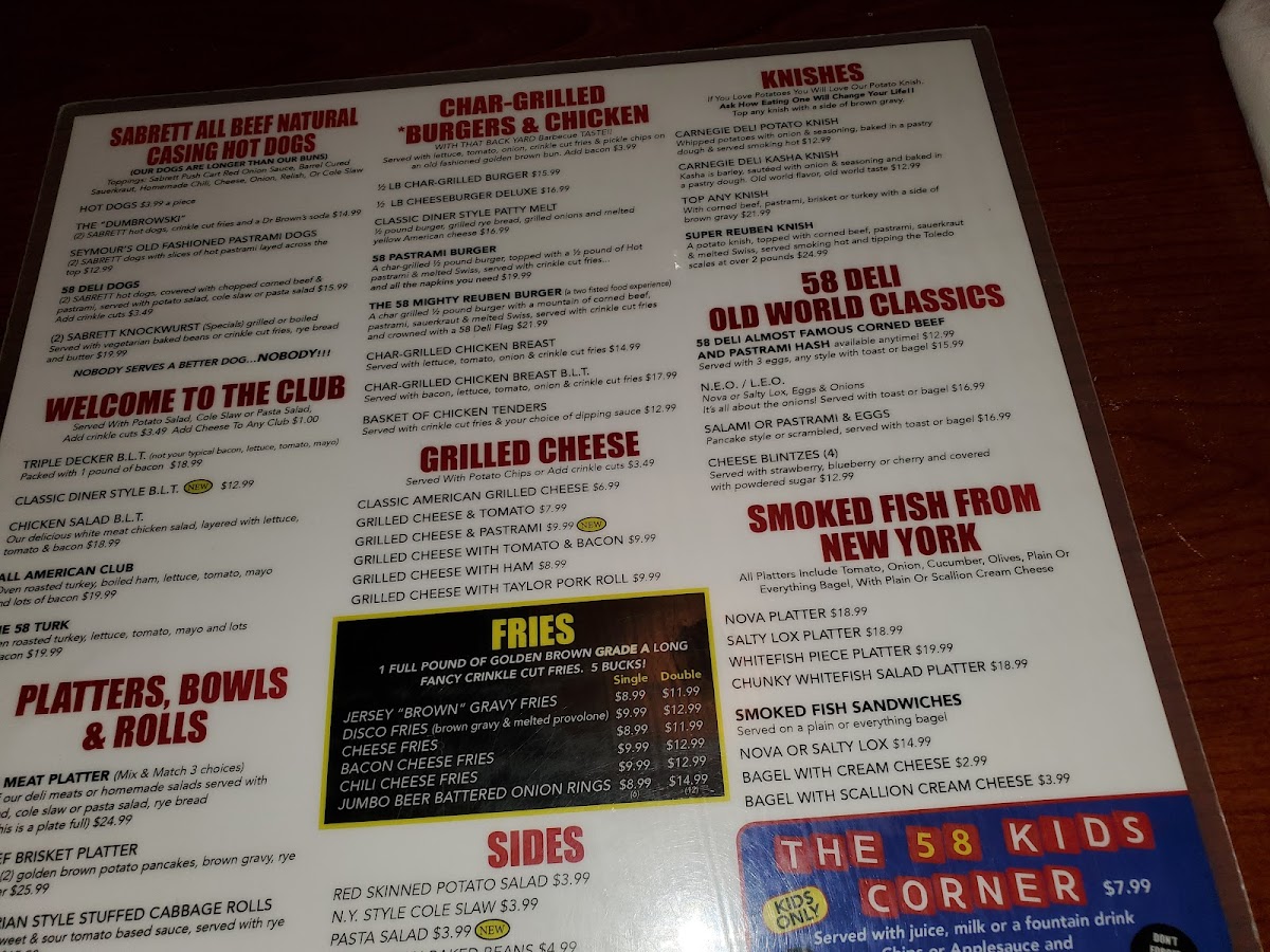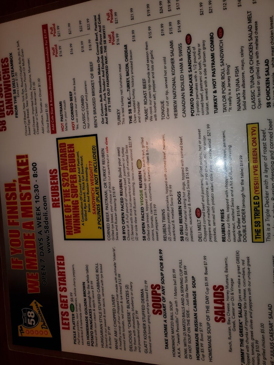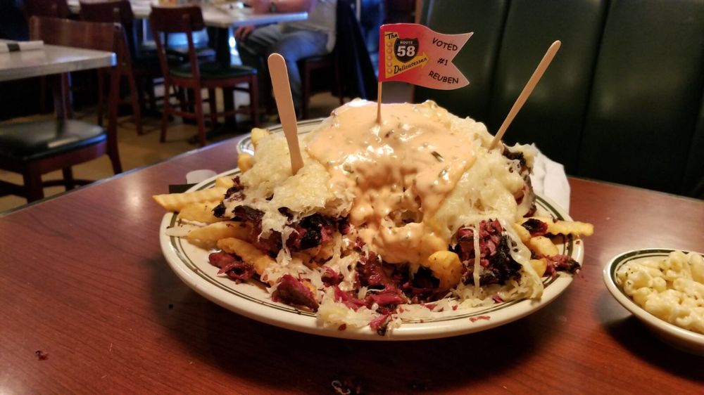 If you’re a seafood lover, Route 58也 offers an impressive selection of imported New York smoked fish. Treat yourself to the Nova Platter ($15.99) or the luxurious Kippered Salmon piece ($17.99) for a taste of authentic deli cuisine that transports your palate straight to the streets of New York.