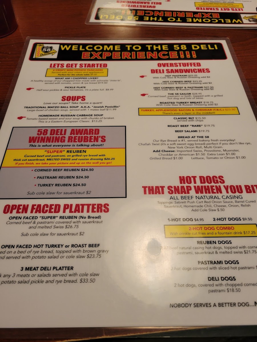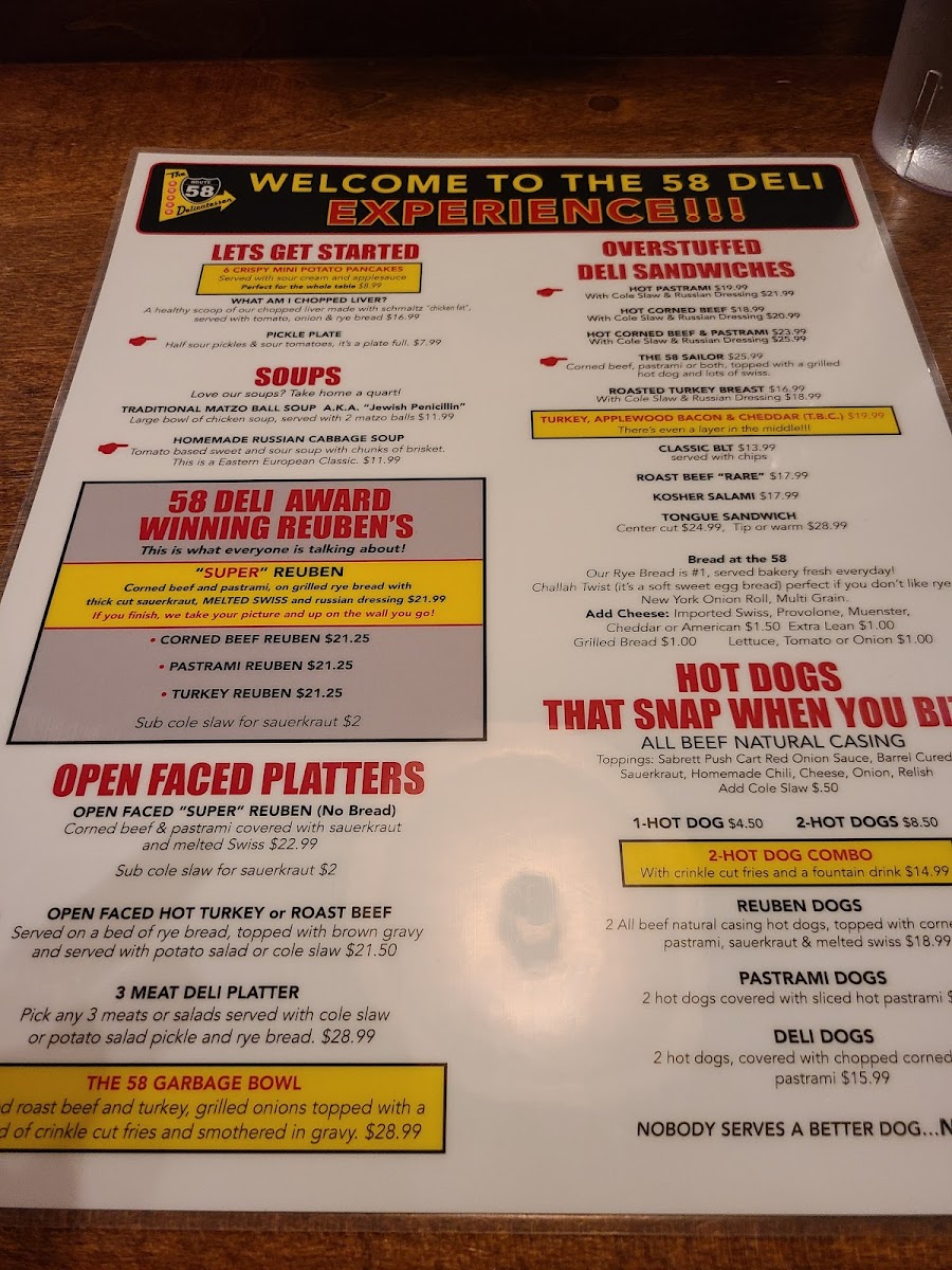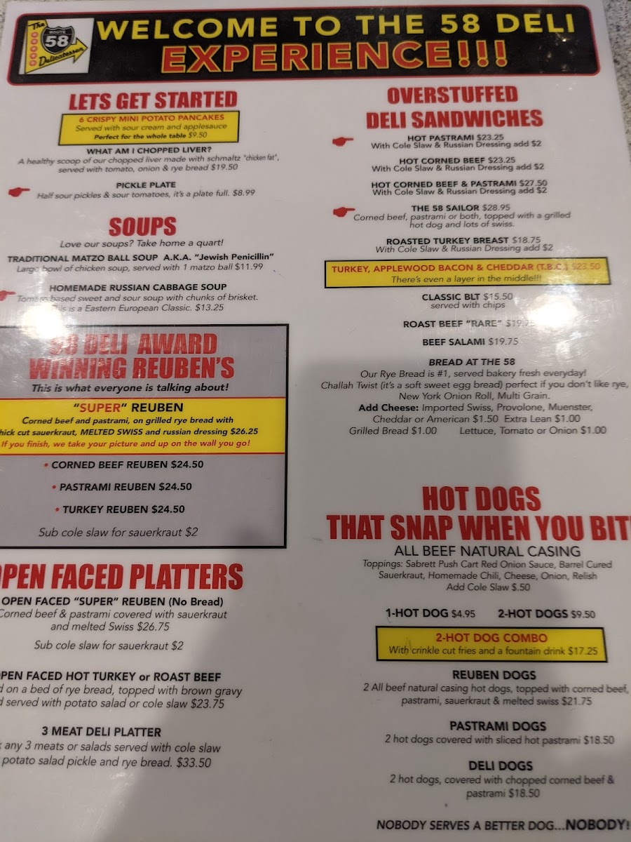 If you’re a seafood lover, Route 58也 offers an impressive selection of imported New York smoked fish. Treat yourself to the Nova Platter ($15.99) or the luxurious Kippered Salmon piece ($17.99) for a taste of authentic deli cuisine that transports your palate straight to the streets of New York.
